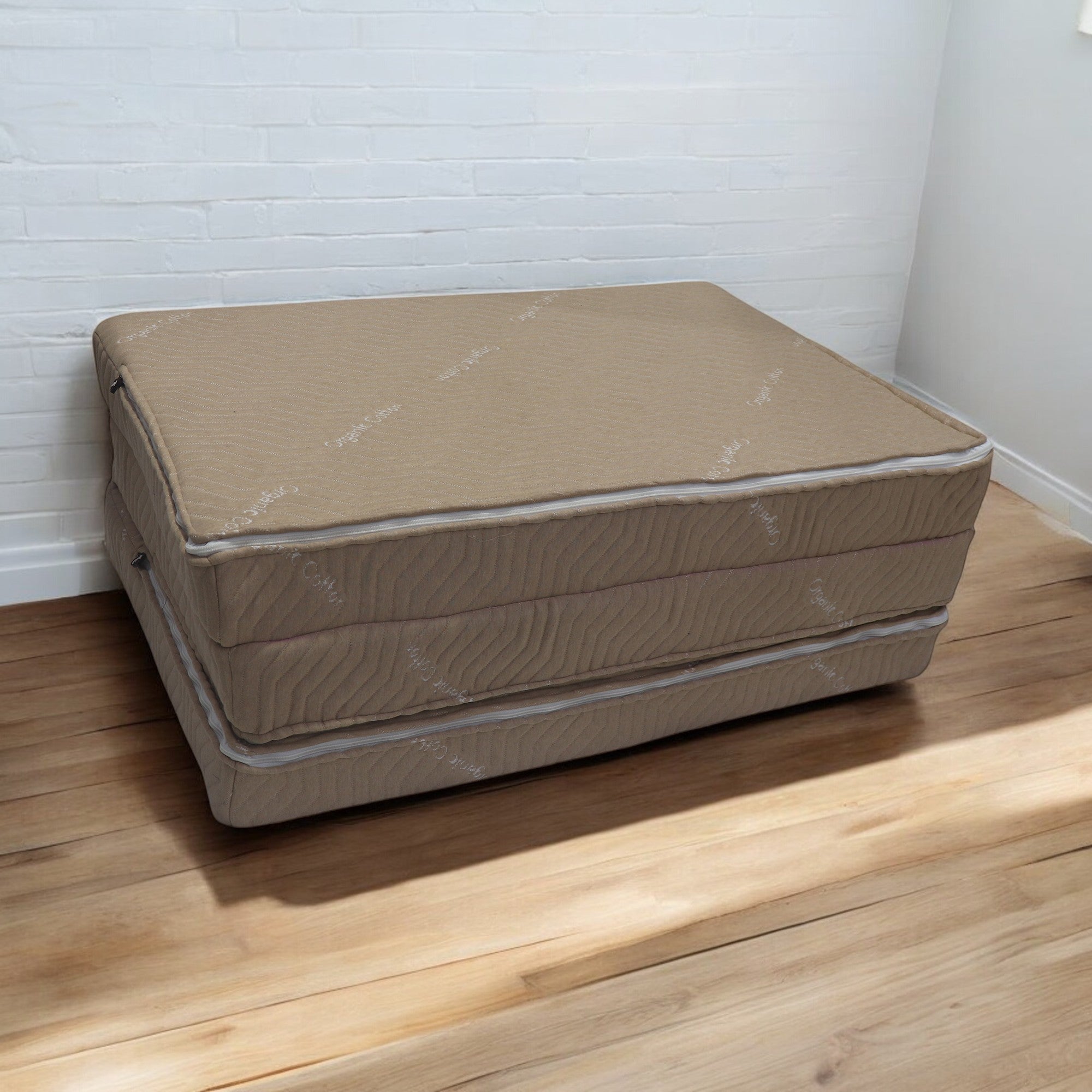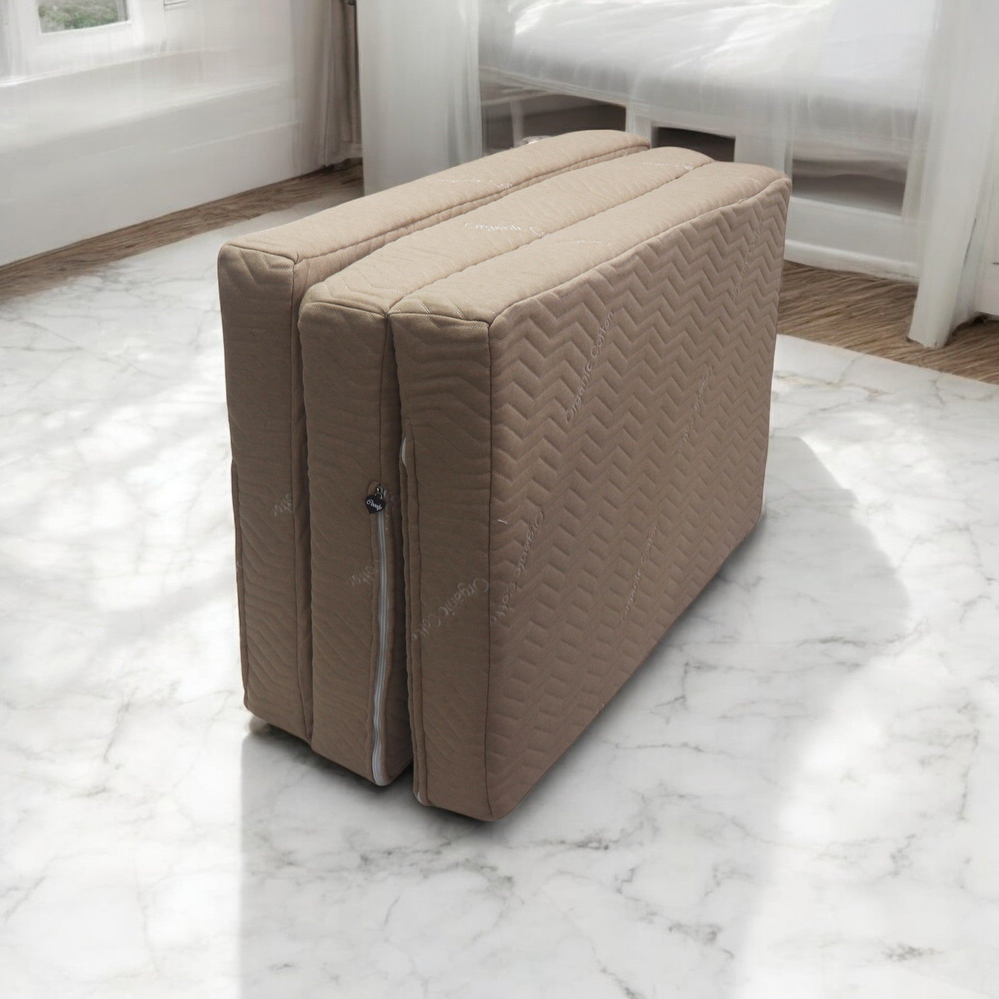 Beige Three Fold Foam Mattress | Foldable Mattress with Removable Covers | High Resilience Super Soft Foam