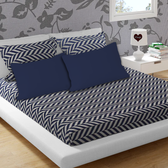 Navy Grey Cotton 200 TC Bedsheet + 4 Pillow Covers
